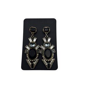 Elegant dangle earrings featuring black stones with geometric design accents. Perfect for elevating formal and evening attire, or for gifting on special occasions.