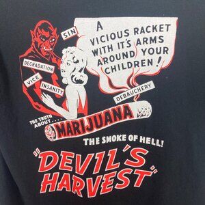 Vintage Style Devils Harvest Marijuana Graphic Tee M L Black Cut Neck Grunge