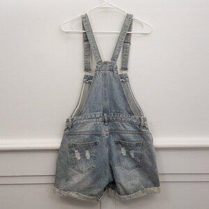 Vintage Style Distressed Denim Overalls Shorts Small Adjustable Straps