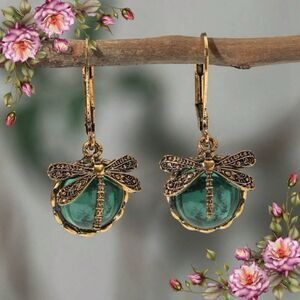 Vintage Style Dragonfly Shape Green Crystal Pendant Bohemian Earrings