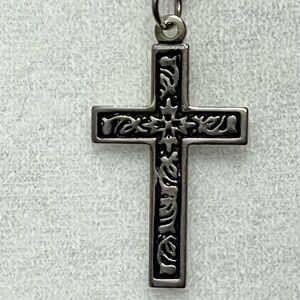 Vintage Style Embossed Silver Tone Cross with Chain. Spring ring clasp.