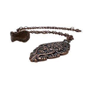 Vintage Style Floral Necklace + Spoon Style Ring Adjustable Antique Copper Tone