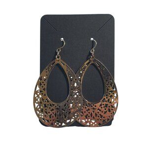 These stunning gold-tone teardrop earrings feature an intricate filigree design, expertly crafted for a vintage appeal. Lightweight with a secure hook backing, perfect for all-day wear.