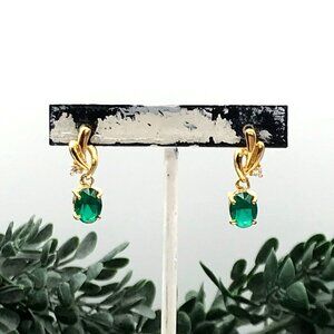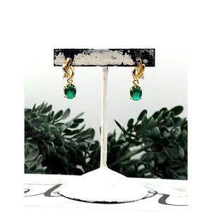 These elegant gold-tone earrings feature a vibrant green gemstone and delicate cubic zirconia accents, ideal for enhancing formal or business attire.