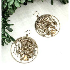 Vintage Style Gold-Tone Drop Earrings With Green Gemstone & Small Cubic Zirconia