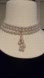 • Earrings: Three-pearl drops (specify pierced or clip-on)