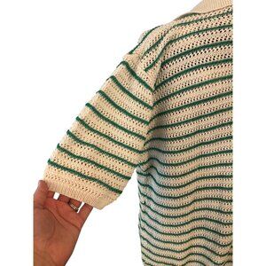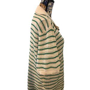 Vintage Style Green Cream Button Down Short Sleeve NERD Collared Sweater Sz XXL