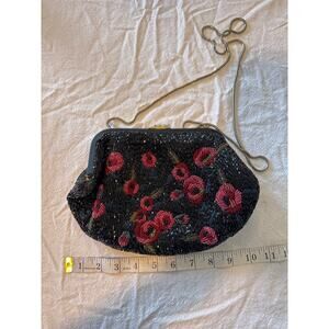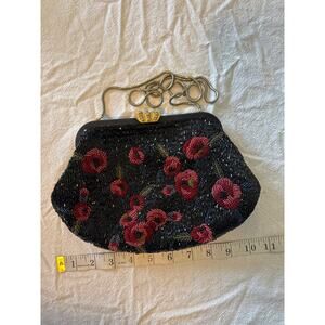Vintage Style La Regale Beaded Evening Clutch Purse Black Red Floral