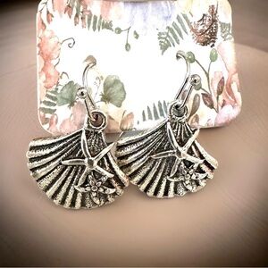 Vintage Style Ocean Shell Shaped Silver Tone Hoop Earrings.