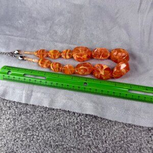 Vintage Style Orange Swirl Resin Acrylic Beaded Necklace Adjustable Chain