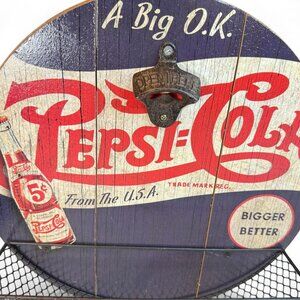Vintage Style Pepsi-Cola Wall-Mounted Bottle Opener With Catcher & Retro Design