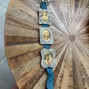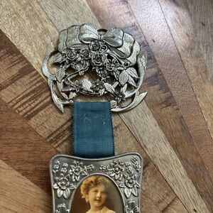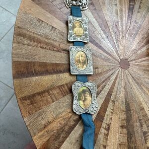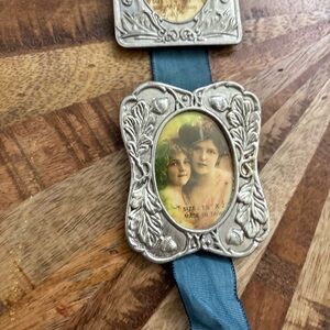 Unique vintage photo frames. Features intricate silver detailing and a blue band.
