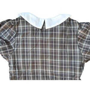 Vintage Style Plaid Dress Gothic Victorian Puff Sleeves White Collar Black Bow R