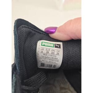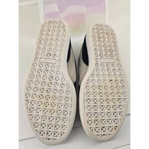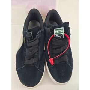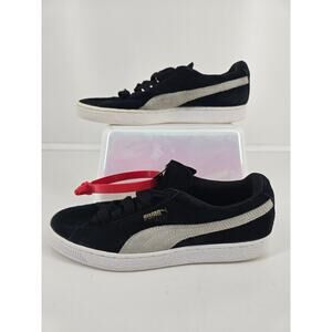 Step into timeless style with these pre-owned Puma Suede sneakers! These classic black suede shoes are perfect for adding a touch of vintage flair to any casual outfit.