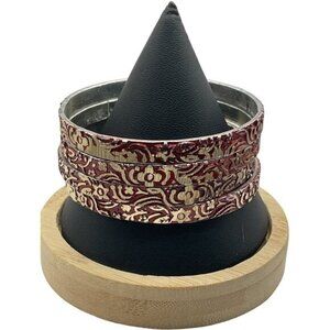 Vintage Style Red Floral Pattern Bangles Bracelets Set Of 4