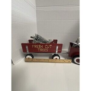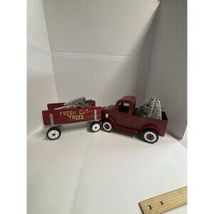 Vintage Style Red Metal Pickup Truck & Trailer Christmas Decoration Flocked Tree