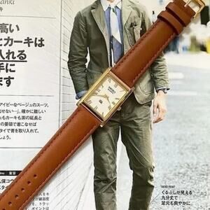 Vintage Style Seiko Quartz Mens Gold Watch & Brown accents W/ Leather Strap