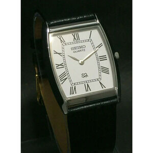Vintage Style Seiko Quartz Mens Silver Watch & White accents W/ Leather Strap