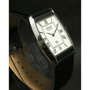 Vintage Style Seiko Quartz Mens Silver Watch & White accents W/ Leather Strap