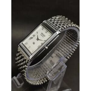 Vintage Style Seiko Quartz Mens Silver Watch & White accents W/ Metal Strap