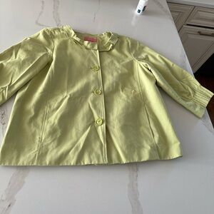 Vintage 90s Soft Lime Green Cotton Shirt Jacket with 3/4 Gathered Sleeves