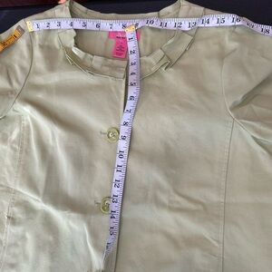 Brighten up your wardrobe with this cheerful 1990s lime green shirt jacket! Made from lightweight, breathable cotton, it features a boxy silhouette, 3/4-length gathered sleeves, and a minimalist three-button front closure. Perfect for layering in spring or summer, this piece is a versatile vintage find for casual or workwear looks.