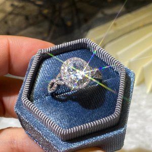 This stunning silver ring features an exquisite oval-cut centerpiece surrounded by sparkling accents. Perfect for adding a touch of elegance to any outfit