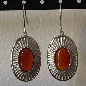 Vintage Style Silver Oval with Burnt Orange Center Stone Fishhook Style New