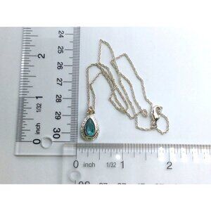 Vintage Style Silver Tone Necklace With Teardrop Blue Gemstone Pendant & Crystal