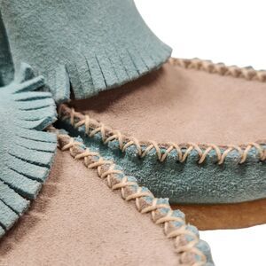 Vintage Style Suede Moccasin Ankle Booties Cream Turquoise Blue Boho Fringe 6