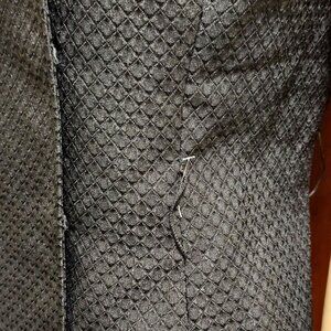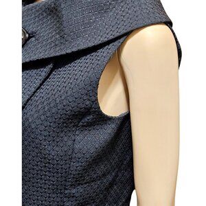 A sleeveless top with a structured silhouette, featuring a textured fabric, oversized collar, and single-button accent. Stylish and versatile.