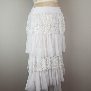 Vintage Style Tiered White Midi Length Lace & Tulle Skirt Ladies size Small