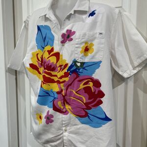 Vintage Style Vans Men XXL White Surf Camp Hawaiian Shirt Floral Painted Pattern