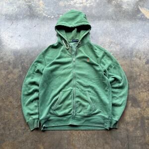 Vintage Style Y2K Polo Ralph Lauren Green Zip Up Sweatshirt 25x31