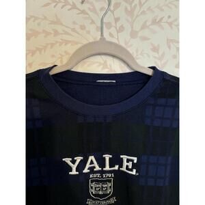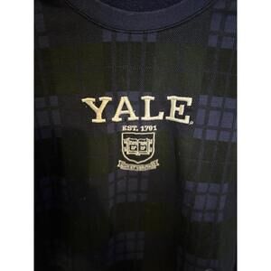 Show off your collegiate pride with this stylish Yale University sweatshirt! Made from soft fabric, this classic crewneck features a unique plaid pattern in navy and green tones. The front proudly displays the 'Yale' logo alongside the establishment year 'EST. 1701' and an embroidered crest, making it a perfect choice for fans and alumni alike. Ideal for casual wear or as a cozy layer during cooler days.