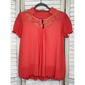 Vintage Style Short Sleeve Chiffon Blouse Size Medium