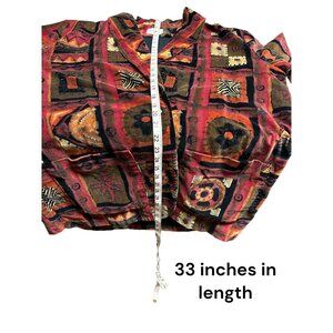 Stylish and unique, this jacket offers a vibrant abstract pattern, perfect for adding flair to any wardrobe. Features button front and two convenient pockets.