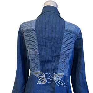 Vintage Styleworks Denim Duster Blue Embroidered Lace Long Jacket Sz 12 Boho