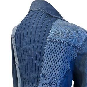 Tags: vintage denim duster, embroidered lace jacket, Styleworks coat, boho western layering, cottagecore fashion