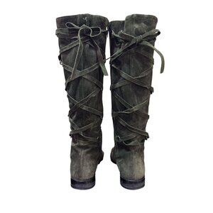 Vintage Suarez Italy Womens Olive Green Suede Knee High Lace Up Boots Side Zip Size 8