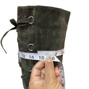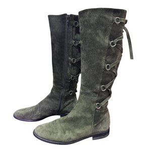 Vintage Suarez Italy Womens Olive Green Suede Knee High Lace Up Boots Side Zip 8