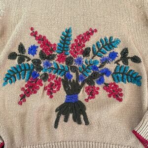 Vintage Suburban Petites Tan Floral Embroidered Cottagecore Sweater
