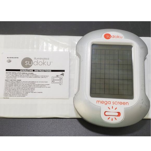 Unveil the world of Sudoku in a portable format with the Technosource Illuminated Sudoku Mega Screen Handheld Electronic Game. This 2005 model brings the classic puzzle to life, offering a vivid display that enhances the gaming experience. Ideal for Sudoku enthusiasts aged 8 and up, it's a perfect blend of education and entertainment that sharpens mental skills through engaging gameplay.