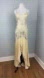 Sue Wong Nocturne ivory/cream gown in a beautiful art deco, art nouveau, 1920’s, Gatsby style. V-neckline with padded bust and spaghetti straps. Beading and sequins on the upper part of the dress, the bottom half has a split in the center to show off your legs. There is a continued sequins/beaded strip going down each side and down the back center all the way to the hem. 100% Silk.