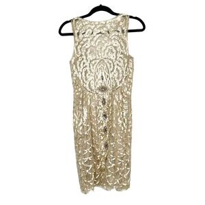 Vintage Sue Wong Nocturne Bodice Lace Cocktail Dress Women's Cream Gold Size 6