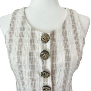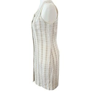 Vintage Sue Wong Small Cream Plaid Sleeveless Sheath Wood Button Down Dress