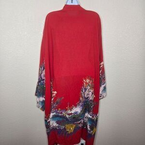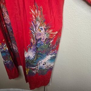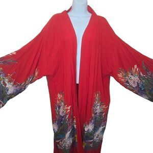 Vintage Sue Starr Hand Made Red Kimono Vibrant Peacock Pattern One Size