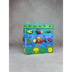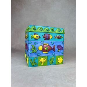 Vintage Sue Zipkin Zippy Fish Tissue Box Underwater Beach Fish Theme