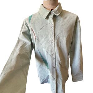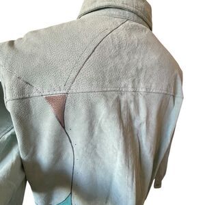 Vintage suede artsy coat is a genuine leather Y2K 90s jacket in a solid green color.