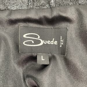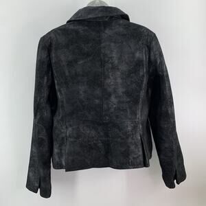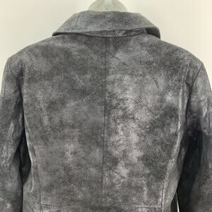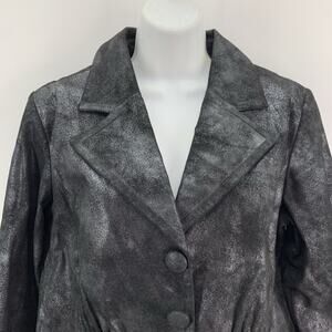 Vintage Suede Blazer Jacket Women Large Black Metallic Wash Peplum Edgy Moto